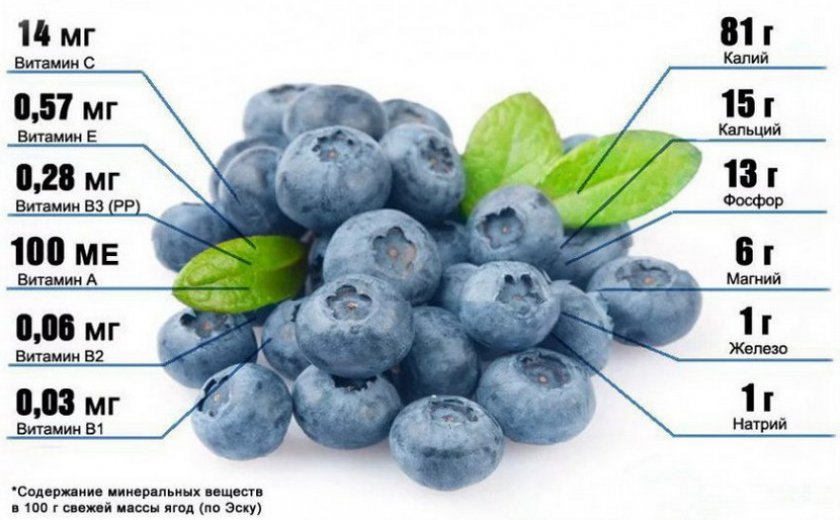 В 100 г плодов голубики этого сорта содержатся такие полезные вещества: