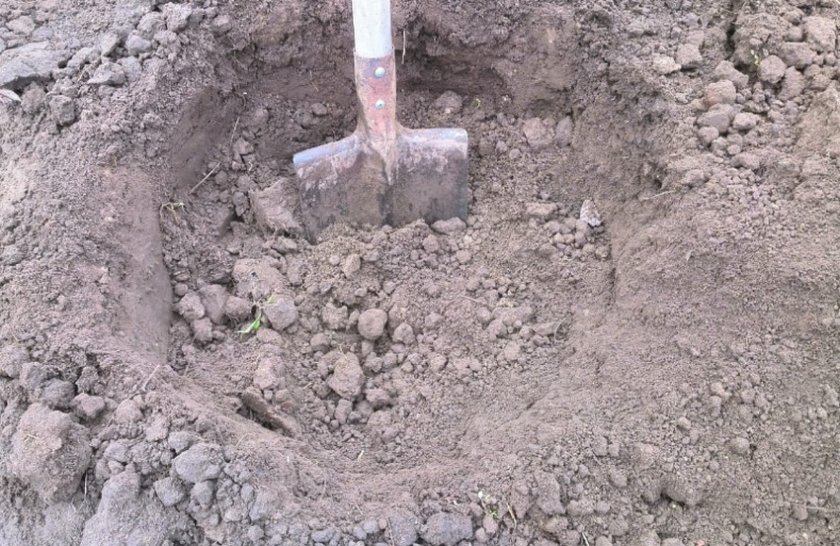 - Изъятый из лунки поверхностный почвенный слой смешивают с ведром торфа, компоста или перепревшего навоза и, добавив к смеси 0,5 кг суперфосфата, засыпают обратно, организовывая небольшой холмик (высота горки должна доходить примерно до половины ямы).