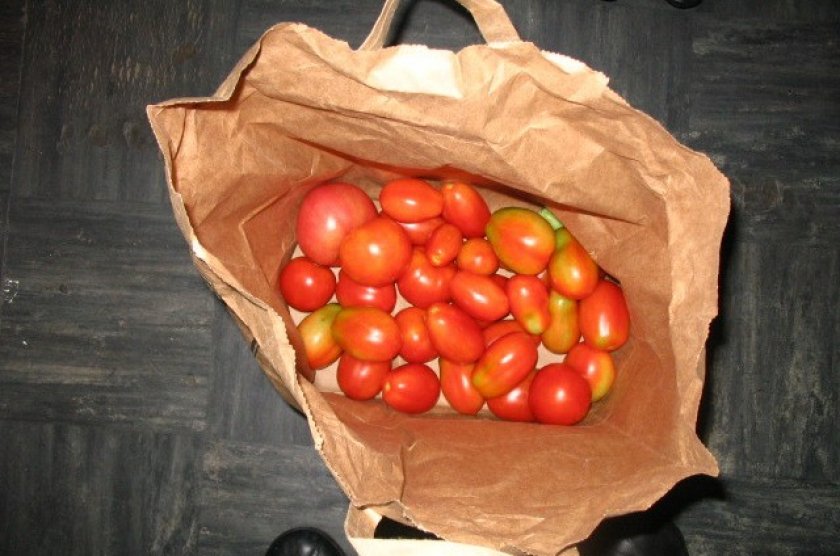 В этом случае используют исключительно бумажные пакеты, полиэтилен конденсирует, что губительно для помидоров. Каждую ягоду протирают спиртом, чтобы обеззаразить поверхность кожицы и уберечь от гниения. Затем оборачивают в бумажную салфетку и кладут в пакет. При желании отсрочить созревание на месяц, температура хранения выбирается на уровне +13–16 °С. Чтобы сократить этот срок наполовину, плоды хранят при температуре +18–21 °С.