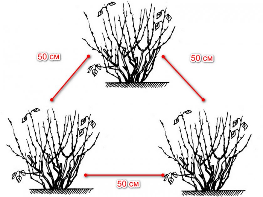 - ленточной — участок разбивают на параллельные рядки с междурядьями около 150–200 см. В рядках кусты сажают равномерно через каждые 70–90 см.