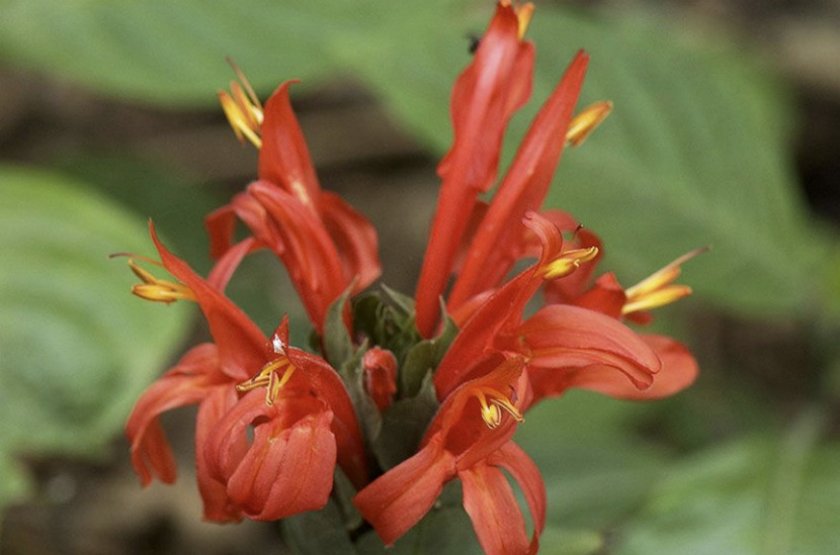 - Красный — имеет прицветники тёмно-оливкового оттенка, из которых во время цветения показываются алые цветочки. В сравнении с предыдущей разновидностью, этот вариант может вырастать до 2 м, поэтому в комнатных условиях его выращивают намного реже.