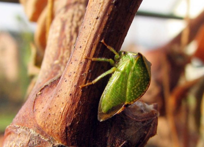 - Цикадки. Данное насекомое поражает виноградные листья и плоды, в результате чего листья засыхают, а ягоды начинают подгнивать. Вредители размножаются в сорняках, растущих возле виноградных кустов, но даже прополка почвы не всегда даёт гарантию отсутствия этих насекомых. Для профилактики нужно периодически осматривать и встряхивать листья винограда, выявляя насекомых на ранней стадии. Впервые эту процедуру проводят после окончания цветения. При наличии вредителей куст обрабатывают растворами специальных препаратов (например, «Фастак»).